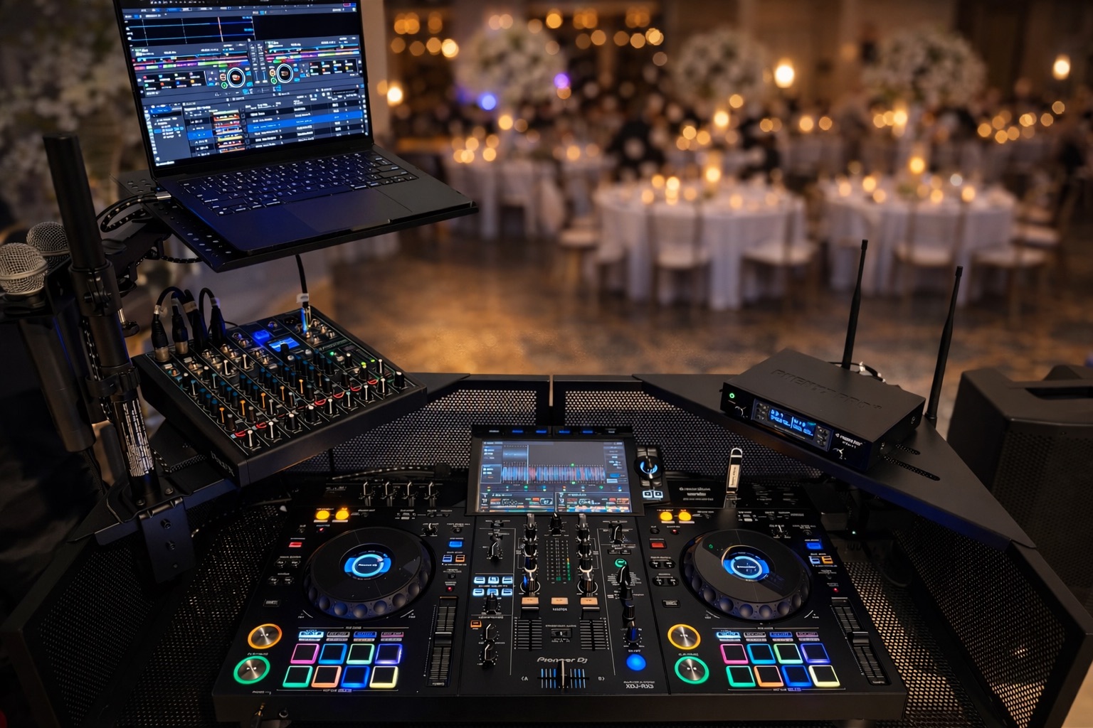 Premium DJ service with clean sound, polished setup, and music tailored to your crowd — not a generic playlist.